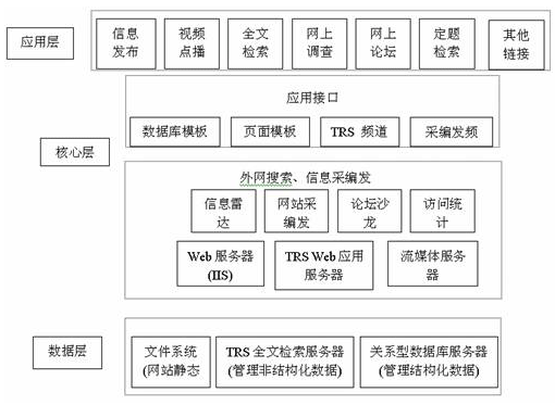 外网搜集的信息和通过采编发系统发布的信息都存贮到了 TRS 全文检索数据库中,因此可以通过 TRS 系统检索、浏览所有的信息。