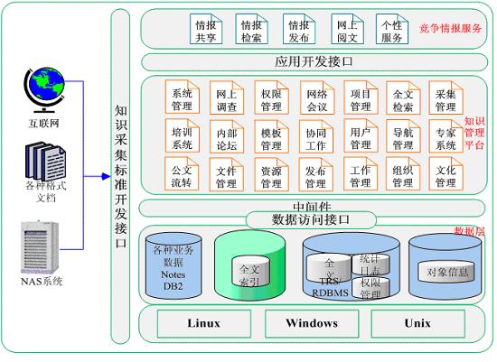 知识管理解决方案在很多方面为应用集成提供了保证,如支持系统三层体系结构,支持J2EE标准中间件,支持XML数据交换规范,提供底层数据库的各种平台的完善的开发接口,提供模块组件,支持二次开发,开放底层数据存储格式等等。