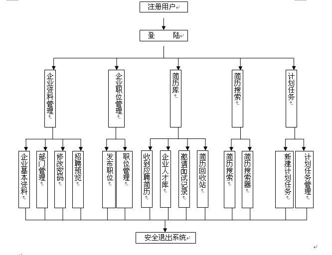 企业管理中心是网上招聘系统的核心模块,其中包含多个信息维护模块,主要用于维护政府部门的基本信息、发布职位、检索人才信息、管理应聘人才、定制计划任务等。个人求职者也可以通过企业管理中心搜索应聘职位等信息。